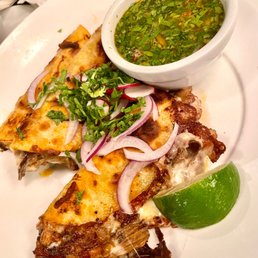 Covered outdoor seating, excellent nachos with a generous amount of toppings, and insane quesabirria tacos (available Friday-Sunday only per the menu). Service was a bit slow but we weren't in a rush.