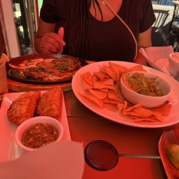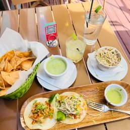 The atmosphere is fun and the food was pretty good. Our group of 6 came in on a Wednesday evening for dinner. I got the steak tacos and refried beans. We split 2 baskets of the $3 tortilla chips and salsa. We did one red and one verde salsa. The red is a chunkier salsa and the verde is creamier. Both were fresh and delicious with ample chips to share! The steak tacos were tender and flavorful. The beans were creamy and had some cheese on them. The only reason for the 4 stars was the service. While our waiter was kind and pleasant, he took a very long time to take our order and a long time after we were finished to get us our bills. The place wasn't overwhelmingly busy and he was playing on his phone near the bar talking to other employees while we waited to order. He's human and we get it though. Overall, we enjoyed our food and drinks. We would visit again.